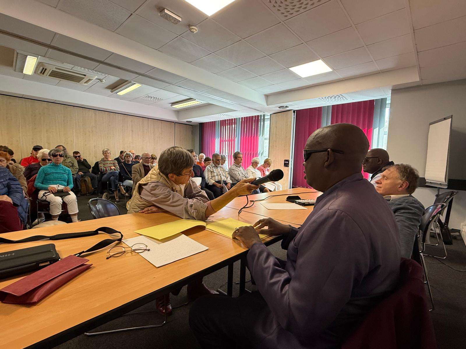 Le 27 dans l’après-midi, devant une assemblée de plus de soixante personnes, nos intervenants Youssouf Diakité, Philippe Ley, Jessica Nganga, Mohamed Azzouz et Yves Andreoletti, ainsi que Noubadoum Mayengar et Jean-Luc Chabod, présents parmi nous par le texte et la vidéo qu’ils nous avaient transmis, ont permis aux participants de comprendre et d’apprécier les résultats qui découlent des différentes actions soutenues par la CSI. Leurs témoignages, qu’il s’agisse des comptes rendus d’actions menées sur le terrain ou des rappels de l’engagement du frère Marcel Bonhommeau et de l’Association des Amis des Aveugles et Déficients visuels qui contribue au financement d’actions à teneur éducative, étaient en parfaite résonnance avec le thème de ce Rassemblement et ont fait apparaître pour la CSI des perspectives concrètes en vue de « continuer à construire avec nos partenaires une solidarité renforcée et rénovée ».